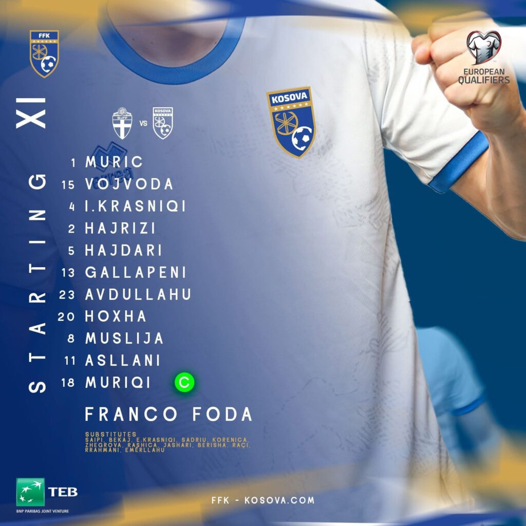 Trajneri Franco Foda ka vendosur të nisë ndeshjen me këta futbollistë: Muric, Vojvoda, Krasniqi, Hajrizi, Hajdari, Gallapeni, Avdullahu, Hoxha, Muslija, Asllani dhe Muriqi.