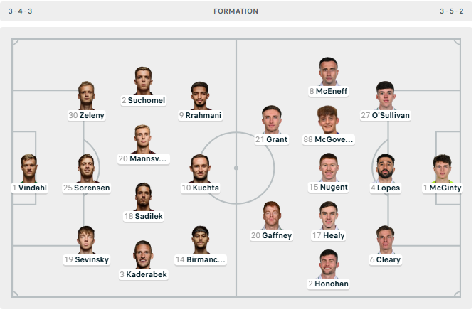 Janë publikuar formacionet zyrtare të ndeshjes mes Spartës së Pragës dhe Shamrock Rovers, e vlefshme për xhiron e parë të fazës së ligës në Ligën e Konferencës.