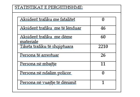 Sipas statistikave nga raporti i Policisë, 46 prej tyre janë me të lënduar, dhe gjithsej 60 aksidente me dëme materiale, transmeton Klankosova.tv.
