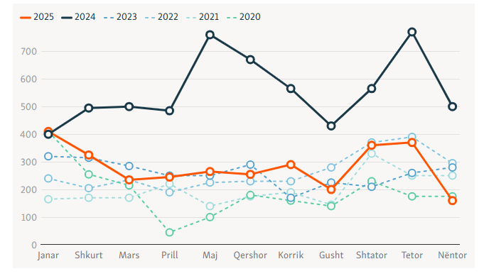 Edhe pse janari i këtij viti shënoi numrin më të lartë të kërkesave për azil nga qytetarët e Kosovës në vendet e Bashkimit Evropian për një fillimvit, trendi ra dukshëm në muajt pasues.