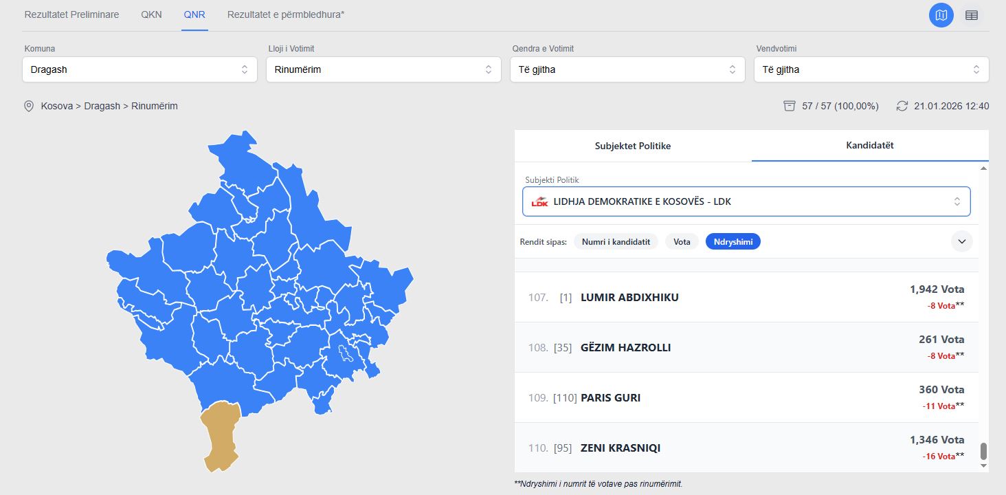 Ndryshime ka pasur edhe te disa kandidatë të LDK-së, të cilët kanë nga minus 1 votë deri në 16.