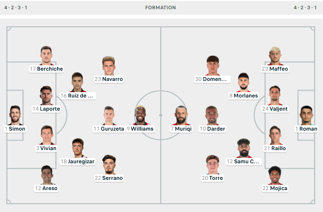 Janë publikuar formacionet zyrtare të ndeshjes mes Athletic Bilbaos dhe Mallorcas, e vlefshme për javën e tetë në La Liga.